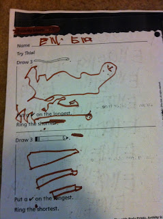 This one is neat because the instructions said to draw 3 worms, and although she didn't go with 3 worms up top, drew the 3 pencils on the bottom :)
